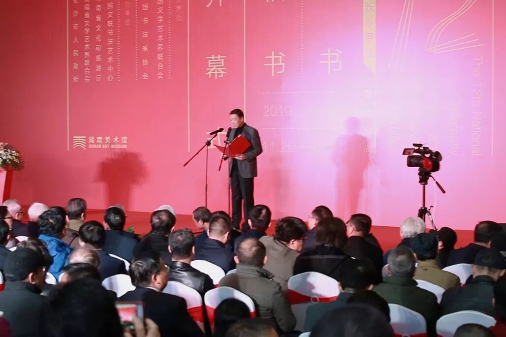 中国文联副主席、中国书协副主席陈振濂,湖南省原省委副书记文选德,湖南省原省委常委李贻衡,湖南省政府原副省长唐之享,湖南省政协原副主席谭仲池,湖南省政协原副主席、省文联主席欧阳斌,湖南省文联党组书记、副主席、秘书长夏义生,湖南省文旅厅副厅长、省书协主席鄢福初,中国书协副主席毛国典、刘金凯、孙晓云、张建会、顾亚龙,中国书协分党组副书记、秘书长郑晓华,中国书协分党组成员、副秘书长潘文海,中国书协副秘书长(挂职)吴占良,以及湖南省直机关、长沙市委、市政府有关领导,十二届国展有关专家,中国文联、中国书法家协会相关部室负责人,全国各地的国展入展作者和书法家、书法爱好者、新闻媒体记者等4000余人参加开幕式。