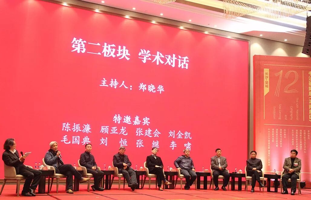 为科学分析当代书法发展的阶段性特征,深入研究所面临的问题和挑战,有的放矢、精准发力,中国书协站在新时代书法发展的高度,带着深沉的问题意识,将正确的政治方向、创作导向和价值取向贯穿到十二届国展工作的全过程。本届国展特设“全国第十二届书法篆刻展长沙·望城论坛”。专题演讲环节由陈振濂主持,学术对话环节由郑晓华主持。顾亚龙、张建会、刘金凯分别作了《十二届国展楷书创作现状述评》《当代隶书现状与发展简析》《从十二届国展面试谈当前作者创作需要注意的问题》专题报告。毛国典、刘恒、张继、李啸等专家就十二届国展相关问题,与参会代表进行了学术对话与互动交流。