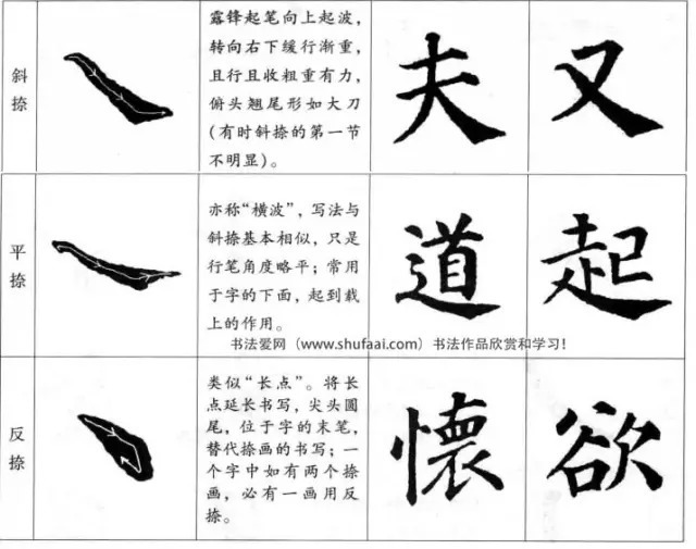 捺画的形态有斜捺、平捺、直反捺、曲反捺等。