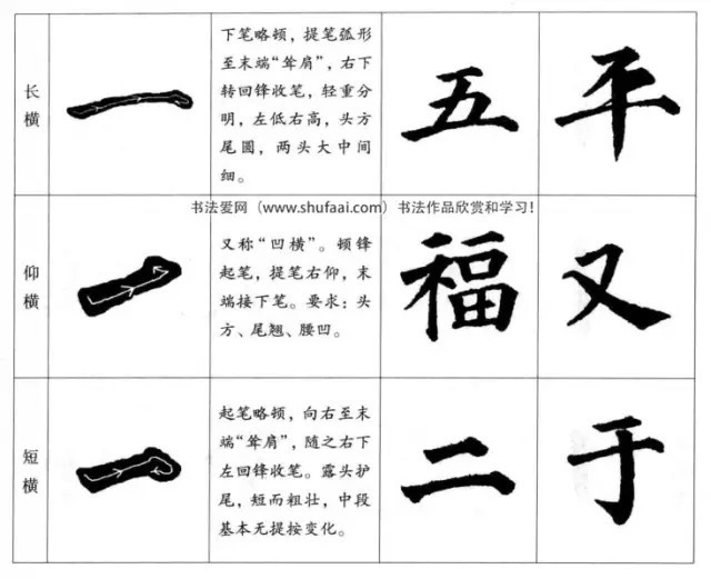 横画是汉字笔画中应用最多的笔画,在字中起着横梁的作用。有平横、仰横、覆横、左尖横、右尖横等多种。基本形态为:起头斜方,腰身挺直而中段稍细,尾部斜圆。