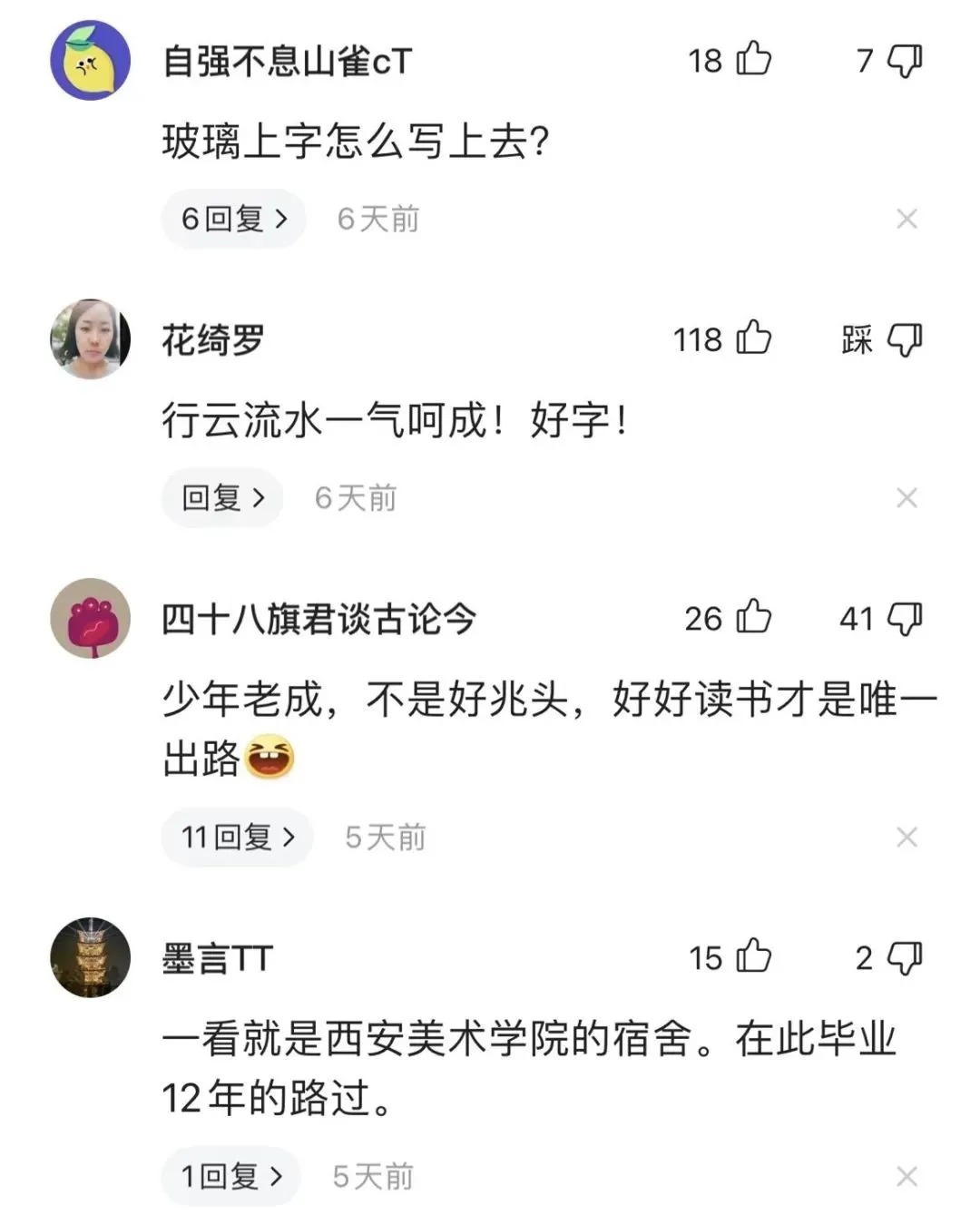 西安一高校学生在宿舍推拉门上练毛笔字火了,网友神评:“高级!这门身价瞬间上涨!”