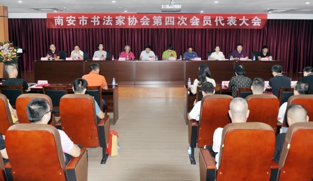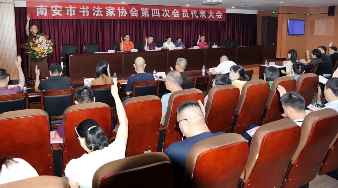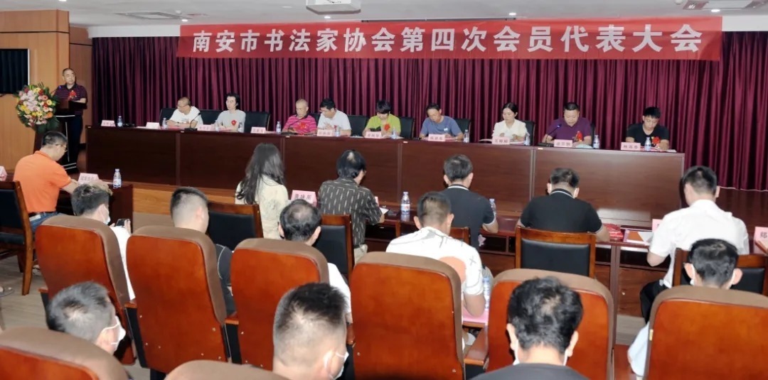 7月22日,南安市书法家协会在行政服务中心召开第四次会员代表大会,选举产生新一届理事会和监事会成员。南安市文联主席黄婉华、副主席王婷婷,泉州市书法家协会党支部书记、秘书长彭新国,副秘书长庄崇宏,以及南安市书法家协会会员代表参加会议。