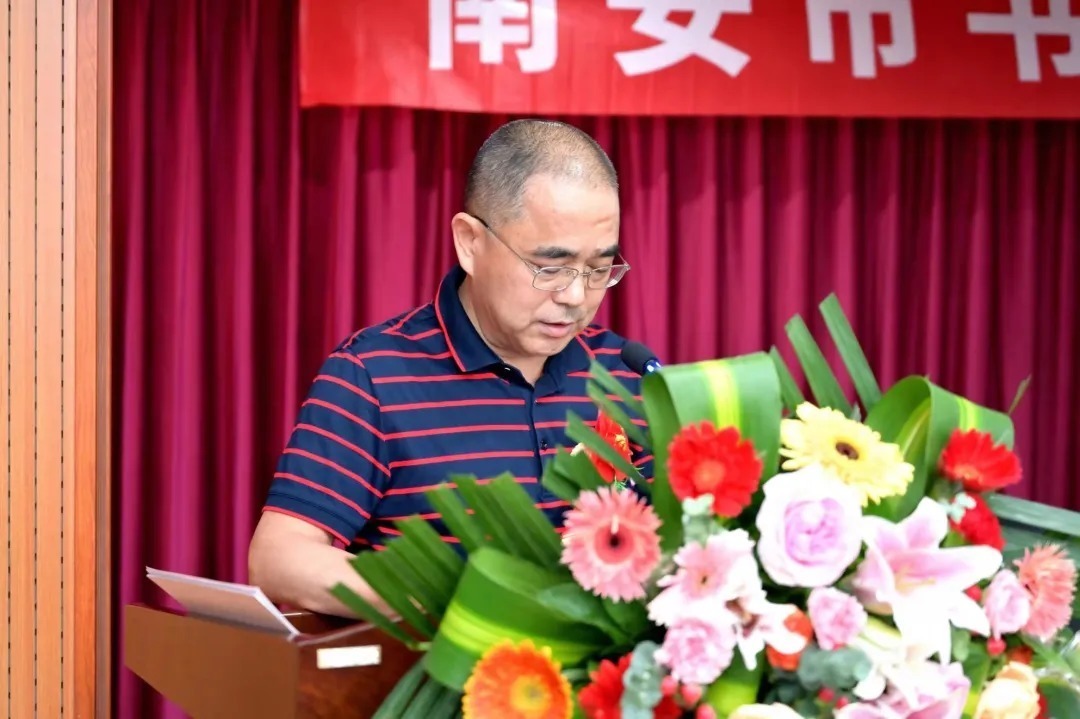 泉州市书法家协会党支部书记、秘书长彭新国对当选的新一届理事会、监事会成员表示祝贺。他充分肯定了南安市书法家协会近几年来取得的成绩,他希望协会能坚定政治方向,继续围绕中心、服务大局,坚持以人民为中心的创作导向,创作更多有思想有深度的精品力作;加强协会自身建设,将协会打造成有信仰、有情怀、有担当的团体,努力把协会工作推上一个新台阶。